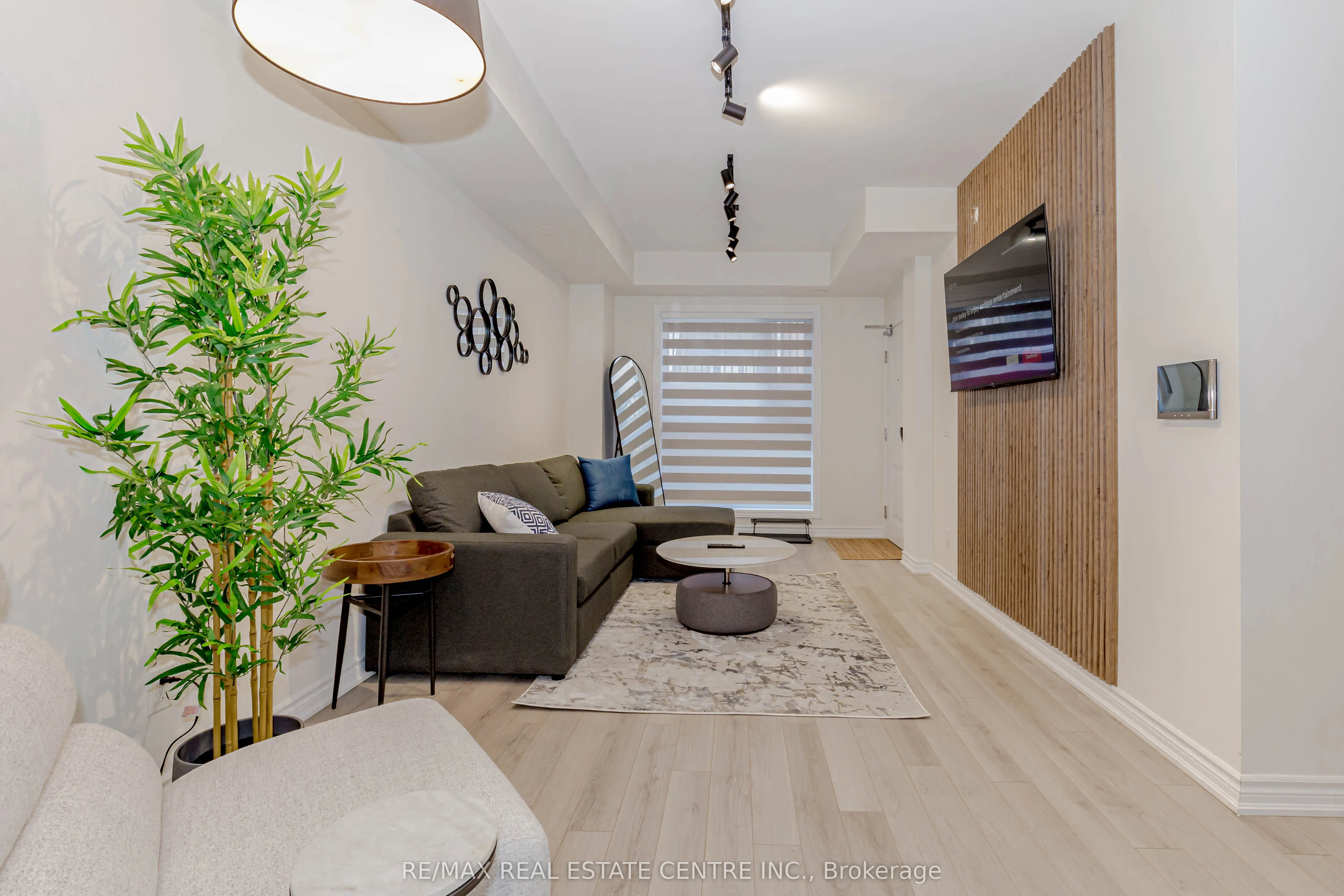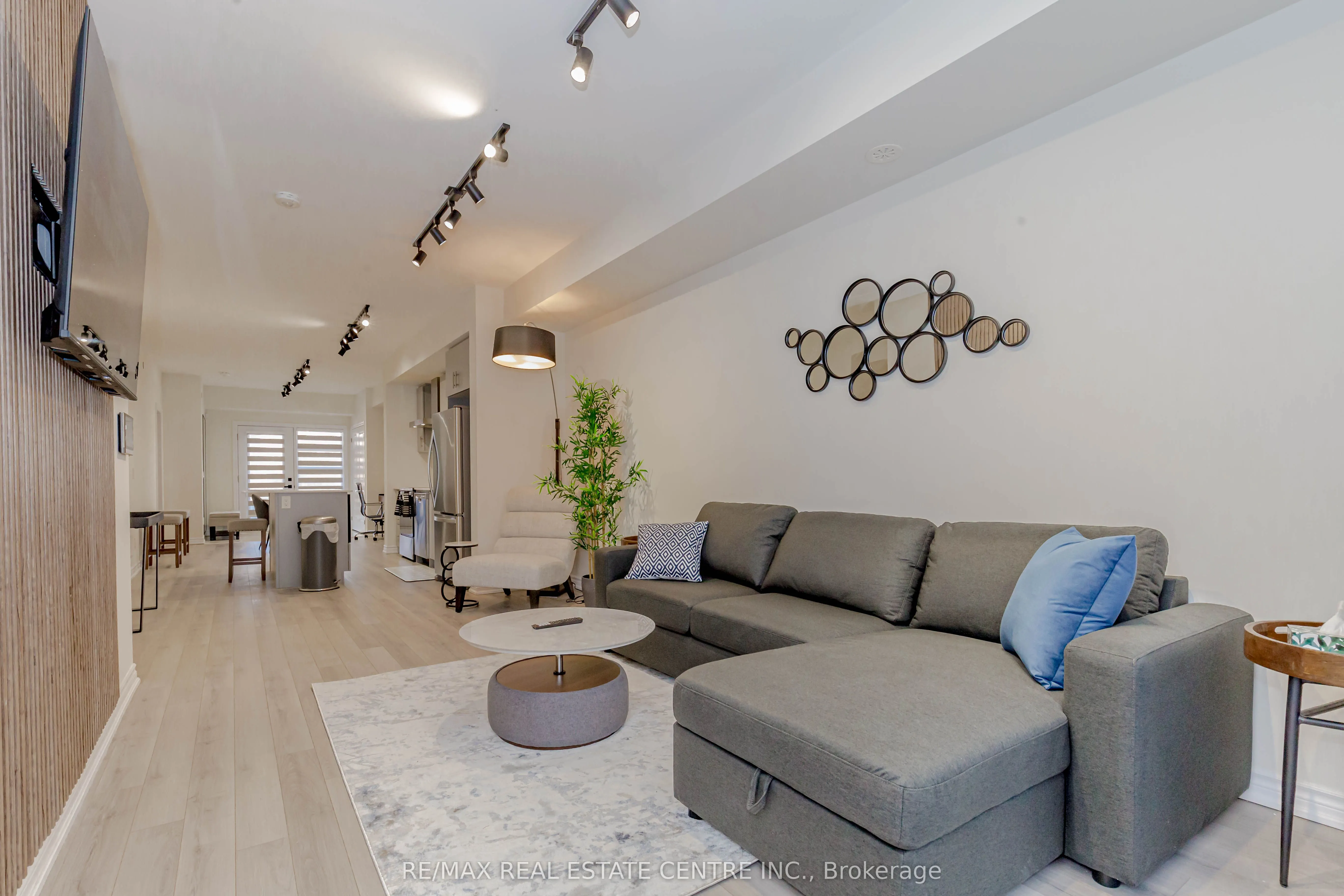 Welcome to Oakvillage by Minto. This stylish FULLY FURNISHED end unit townhome offers nearly 1,100 sq ft of thoughtfully designed living space, 2 large bedrooms, 2 full bathrooms, upgraded kitchen, one private patio, and a terrace that backs on to green space. Enjoy an open-concept layout with lamin...ate floors throughout and high ceilings for an open airy feel. The sleek kitchen is equipped with stainless steel appliances, herringbone backsplash, quartz countertops, and breakfast bar. The primary bedroom includes a large walk-in closet with a private ensuite bathroom. This location boasts easy access to the 407, 403, QEW and Oakville GO Station. Less than a 15 minute drive to main areas in Mississauga. Lots of department stores, shopping plazas, upscale restaurants, high rated schools and public transit right at your door step! **Unlimited 1.5 GB internet included**